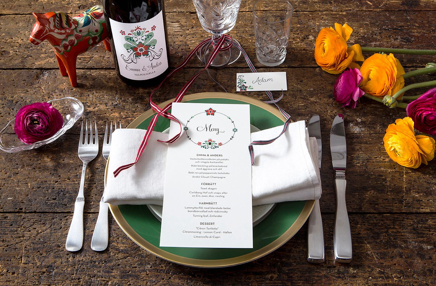 Välj ett design program och få allt från Save the Date till vinetiketter i en och samma stil till din fest.